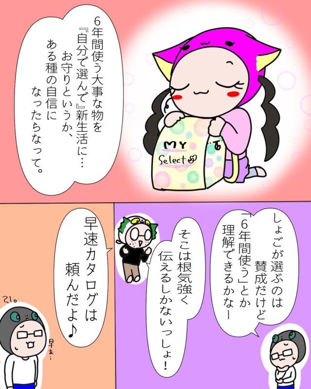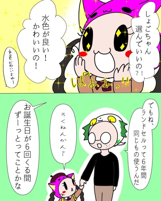 初めて「ラン活」という言葉を知った時は驚きました。自分で選べることを知った時のしょごーきちゃんの嬉しそうな様子、とっても可愛いですね。