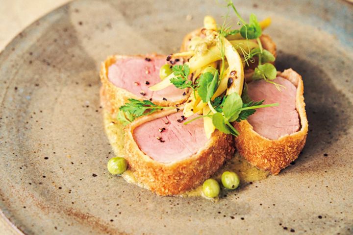 長期飼育された豚肉は有機しいたけでマリネし、芳醇な香りをまとわせ、しっとり柔らかく揚げている。自然豚のコトレッタ¥3,180