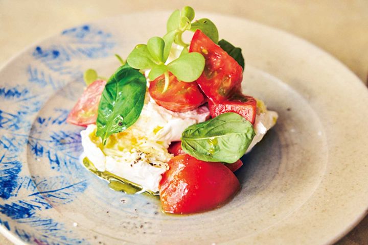 自家製モッツァレラと味の濃いトマトは素材本来の味わいを生かすべく、シンプルな一品にできたてモッツァレラとアメーラトマト カプレーゼ¥1,590