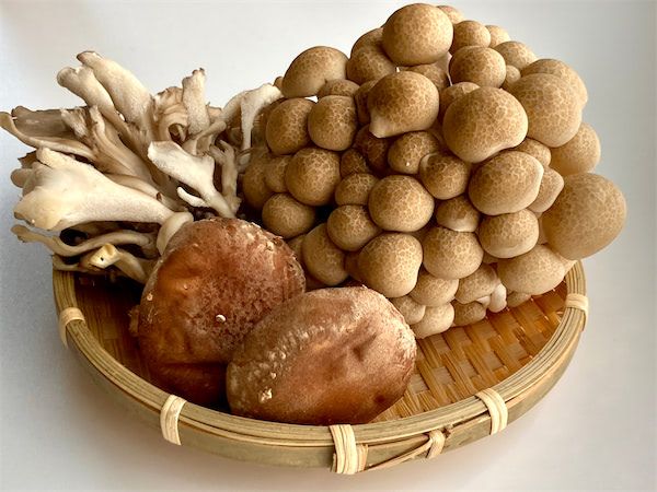 しいたけには上記のほかに食物繊維、がん抑制作用に効果があると言われているβ‐グルカンや、コレステロール値を下げる働きのあるエリタデニン、ビタミンDの補給に役立つエルゴステロールなどの成分も。まいたけも食物繊維、β‐グルカン、エルゴステロールが含まれるほか、三大栄養素(たんぱく質、炭水化物、脂質)の代謝を促す作用のあるナイアシンが多く含まれているのが特徴です。しめじも食物繊維、エルゴステロールが多く含まれ、エネルギー代謝に関わるビタミンB2が特に多く含まれます。また、肝臓の代謝機能を高める働きのあるオルニチンも多く含まれています。