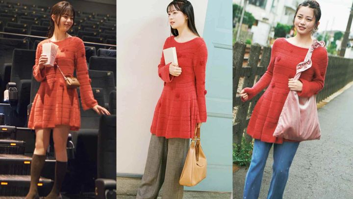 3. スタイルアップも狙える♡ Aラインシルエットの『赤ニットワンピ』活用術