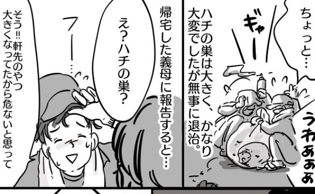3. 「ハァ…」親孝行がしたくて義実家のハチの巣を駆除した夫と私、義母から返ってきたまさかの言葉とは?