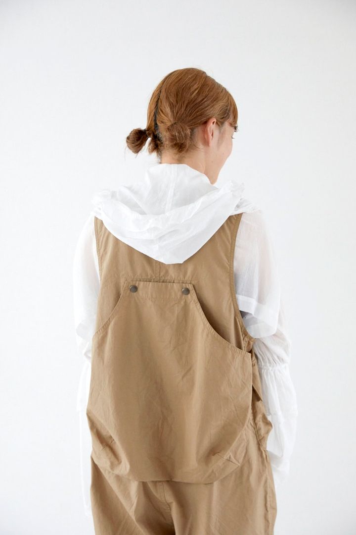 「シャツは取り外し可能なフードと、袖のボリューム感がお気に入り。袖の長さもポイントですが、袖口はゴムが入っているので調整も可能です」