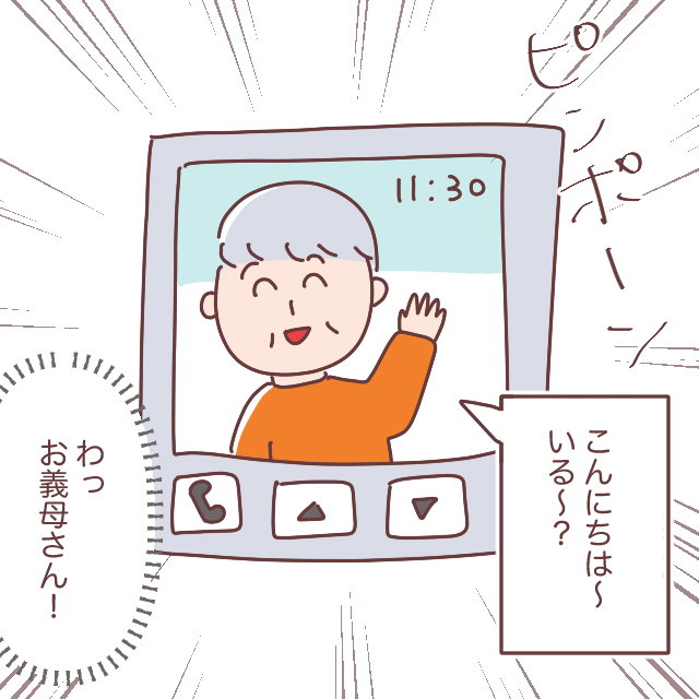 ある日のこと、ピンポーン!時刻は午前11時30分。インターホンが鳴ったかと思うと「こんにちは~いる~?」モニターを覗くと「わっお義母さん!」何も約束もしていないにもかかわらず、入口にお義母さんが立っていて、キョウコさんは驚きました。