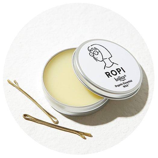 ROPI × bojico オーガニックエッセンシャルワックス 40g 3,960円/nanuk 「気張らない地毛生かしが女っぽいと感じるので、いつもバームでサラッと整える程度。コレはストレートヘアからパーマスタイルまで艶・束感で動きも簡単に作れて馴染みやすく、べたつきが少ないのでずっと愛用しています」(インスタグラマー・マイさん)