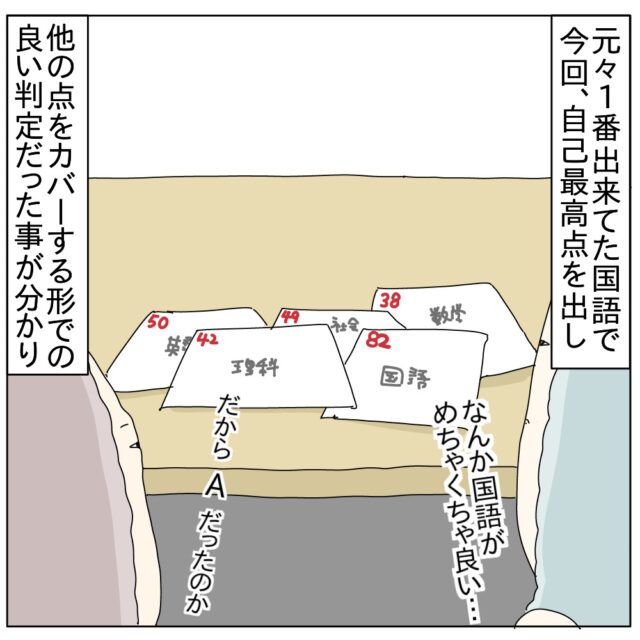 だけど国語が今までで1番いい点だったから合計の評価が良かった事が分かった。