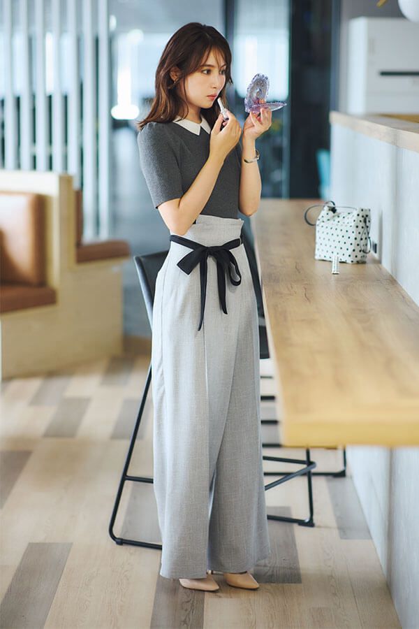 パンツスタイルは腰リボンで大人可愛く