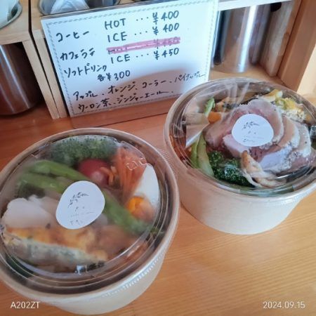 ソフトドリンクの注文も出来ますのでイートインスペースか外のパラソル付きのテーブルを利用し味わいたいです。緑に囲まれた静かなところです。食が進みそう…。