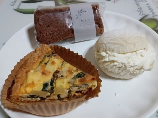 キッシュ・白パンのあんこクリーム・米粉シフォンケーキのココアの3つをチョイス‼
