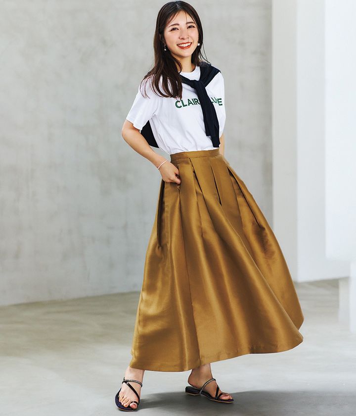 5位 大人の光沢感【ドラマティックスカート】でTシャツコーデも一気に秋めく