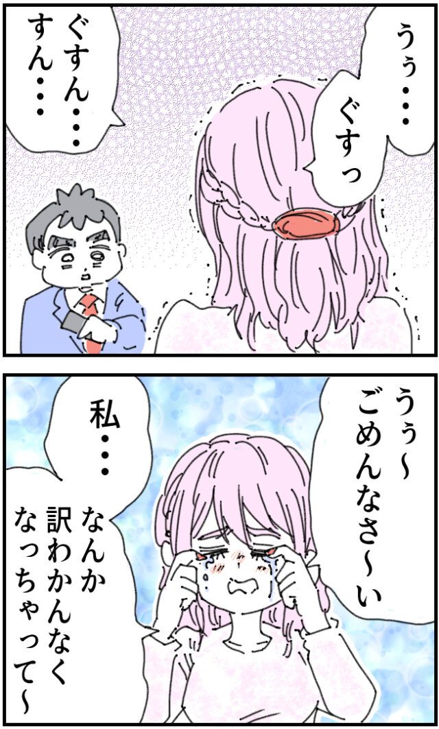 目の前で若い女性に泣かれてしまったいちろうさんは「泣かないでよ。僕も安請け合いして悪かったんだし」と、少し態度を和らげました。