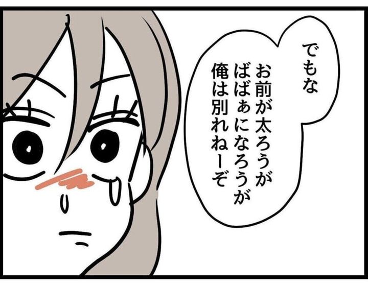 若くてキレイな主人公と結婚したことを、否定しなかった夫。ですが今後、体型が変わり年齢を重ねても「別れない」と堂々と宣言してくれました。見た目だけで判断し、結婚を決めたわけではないのです。