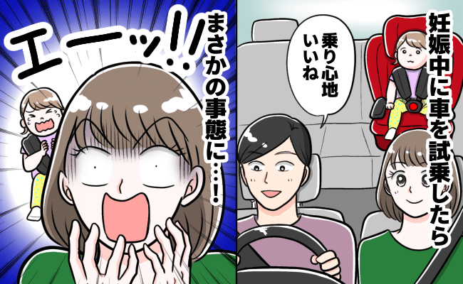 「キャッー!!!」2人目を妊娠中に車を試乗していたら、思いもよらない事態になり…呆然。その後