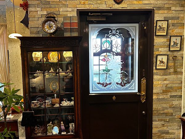 ステンドグラスやアンティークなティーカップを見ながら、カウンター席も良いですね。 ゆっくりまったり1人の時間に浸れそう。