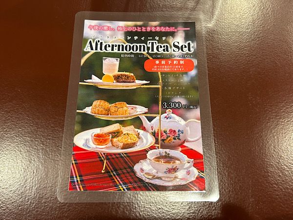 アフタヌーンティーセットもあり、利用希望日の2日前までの事前予約制のようです。