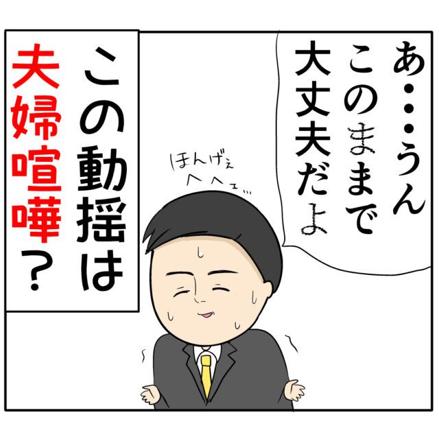 「あ・・うん。このままで大丈夫だよ」良し男さんの返答する様子を見ながら「この動揺は夫婦喧嘩?」と考えるふり子さん。