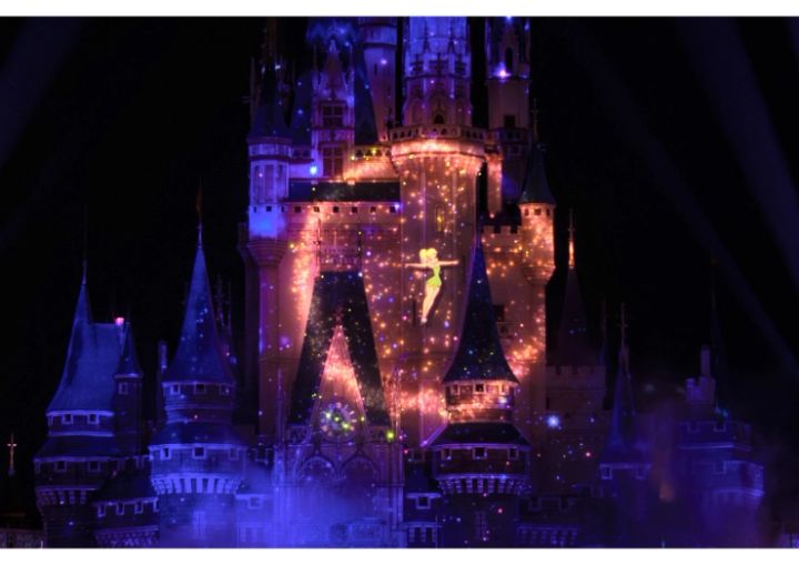 ショーは、ティンカーベルに導かれて進められます。ティンカーベルの粉をかけてもらって、一緒に空の旅に出かけているような気分に♡