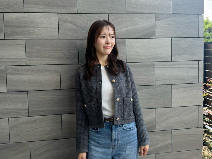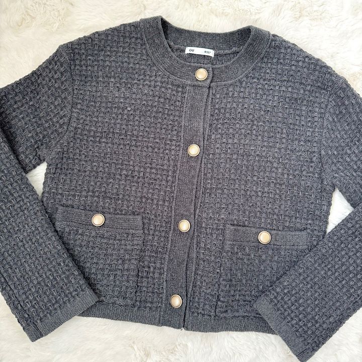 グレー×ゴールドボタンが可愛いニットジャケット🩶