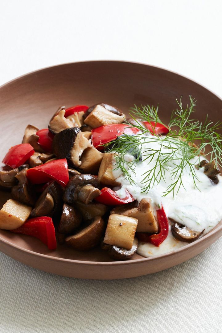 塩麹効果でぐっと味に深みが出る"トルコ風きのことパプリカのサラダヨーグルトソース"