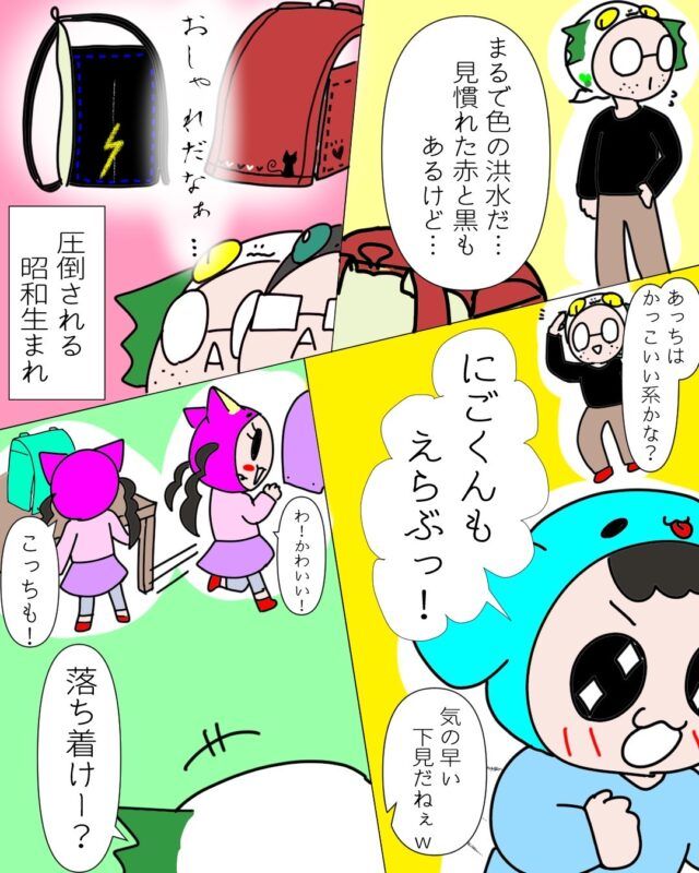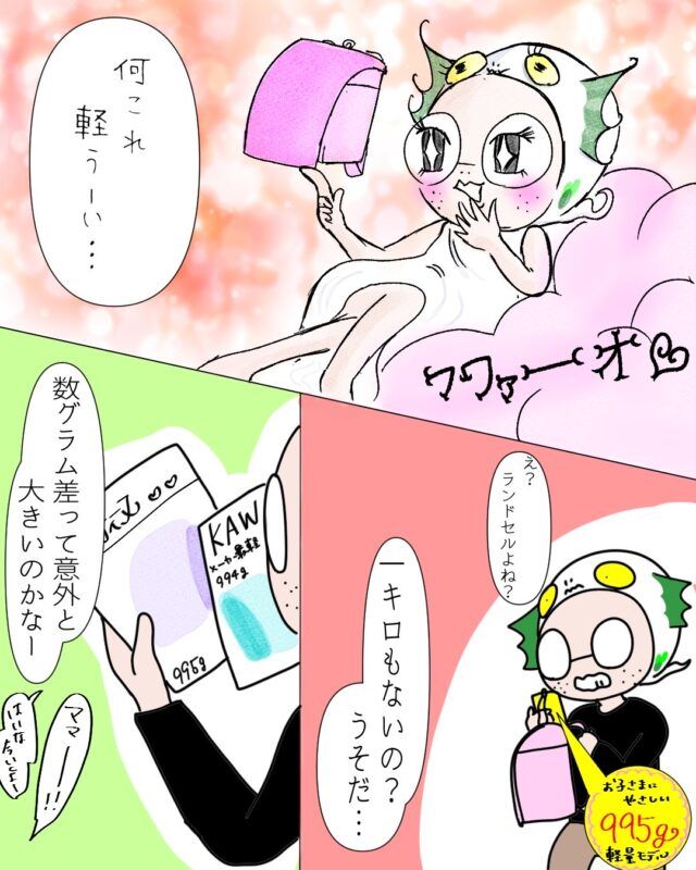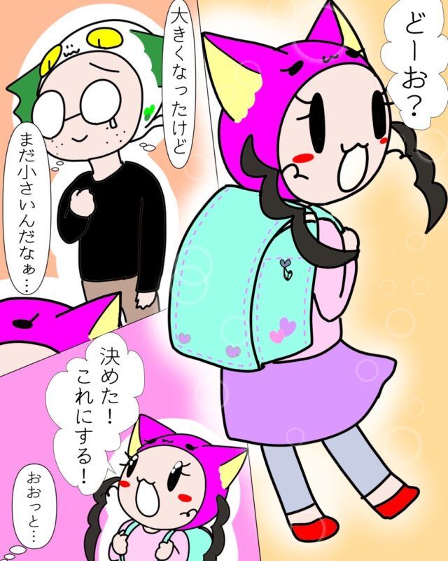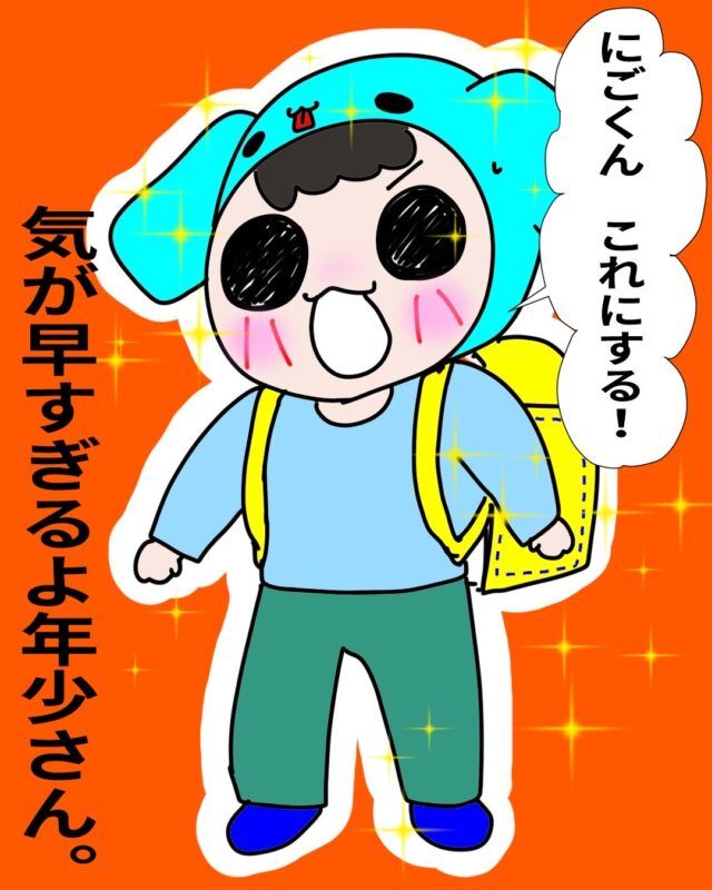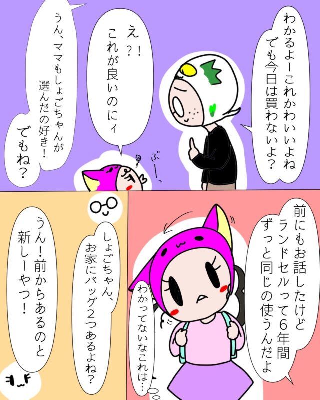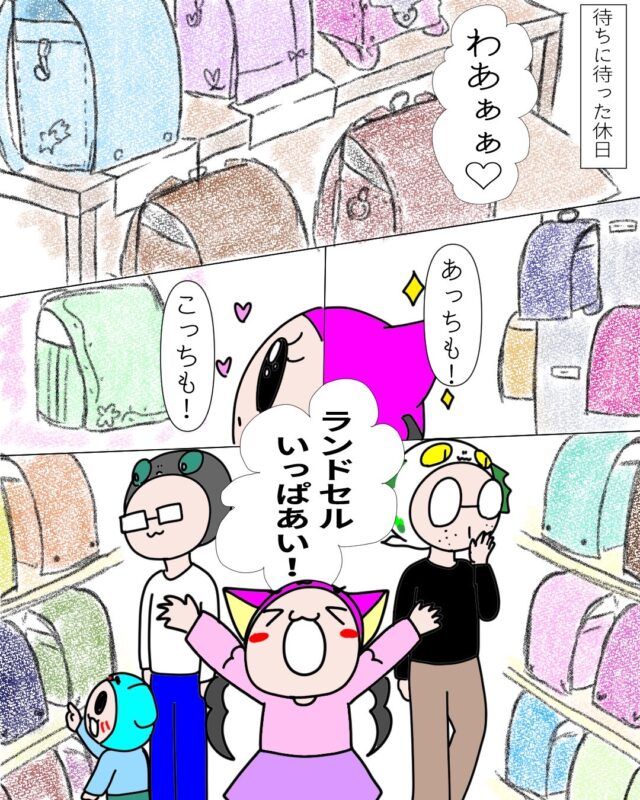 たくさんのランドセルに囲まれてテンションが上がるしょごーきちゃん、気持ちわかります!それにしても、にごーきくん本当早すぎますー!!(笑)
