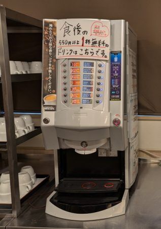 食後のセルフコーヒーはこちらで