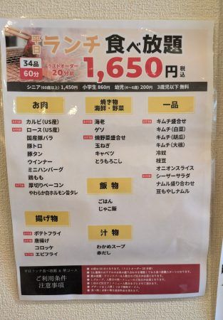 「焼肉食べ放題YA喜楽」のお昼の営業時間は午前11時30分~午後3時(LO2時30分)