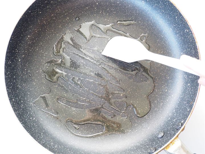1. フライパンに油を引き、シリコンベラなどで塗り広げる。