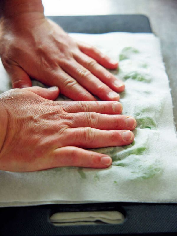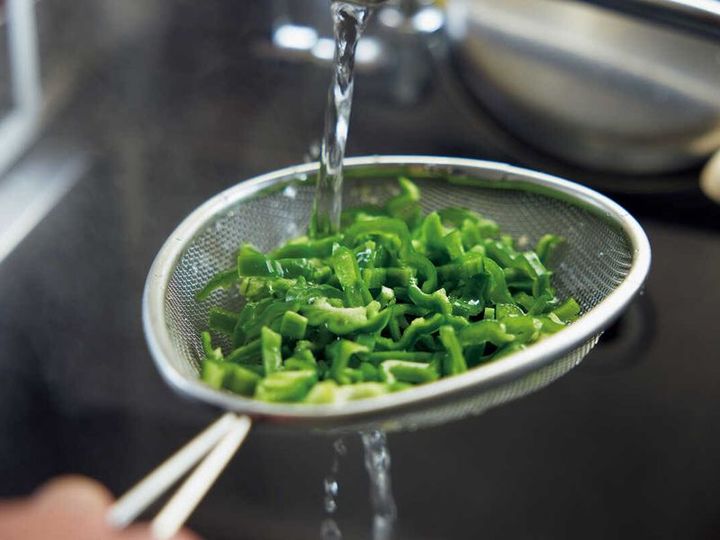 ピーマンに熱湯をかけた後、ペーパータオルで押さえ、水けをしっかり取ることで味がぼやけません。