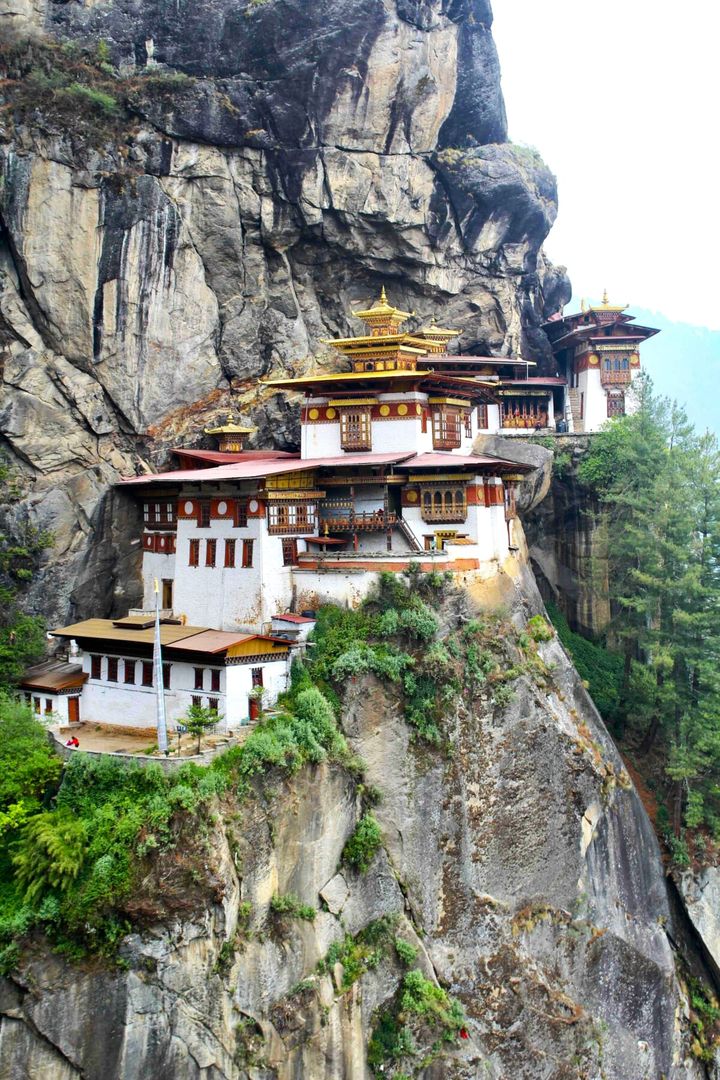 切り立つ崖にはりつくように建てられたタクツァン寺院は、チベット仏教の聖地 。8世紀、ブータンに仏教を広めた聖者グル・リンポチェ(パドマ・サンバヴァ)が虎にまたがりこの地に舞い降りた、という伝説から「タクツァン(虎のねぐら)」と呼ばれるようになったそうです。