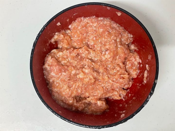 動画では合いびき肉を使っていましたが、筆者は豚ひき肉を使いました。