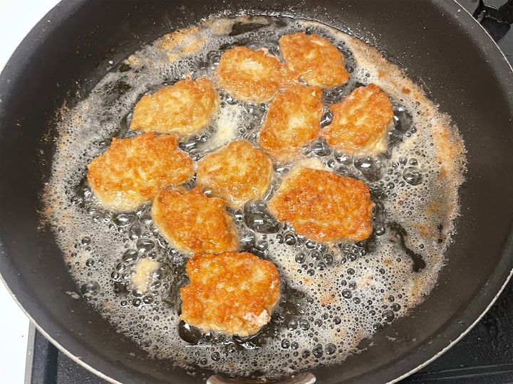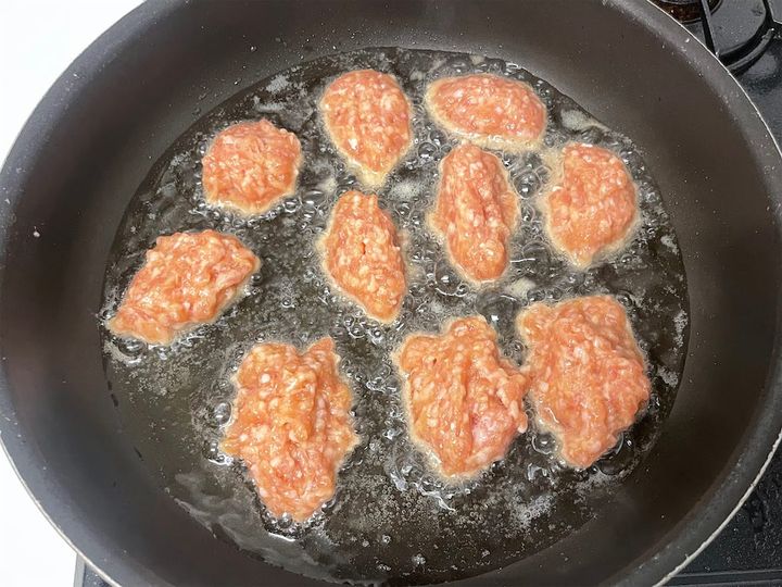 揚げる作業がややハードル上がりますが、ひき肉を練ったら揚げてたれを絡めるだけなので、難しくありませんでした。