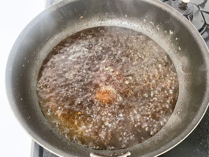 4. フライパンの油を捨てて軽く拭き取り、たれを入れて火にかけます。