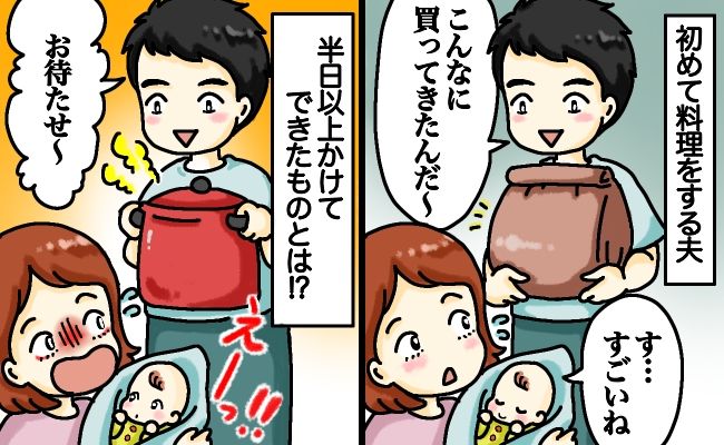 産後しばらくしてから疲れがひどく、これまでのように家事ができなくなりました。なかでも家族の食事を作るのが辛く、夫に料理をお願いすることに。その結果……。