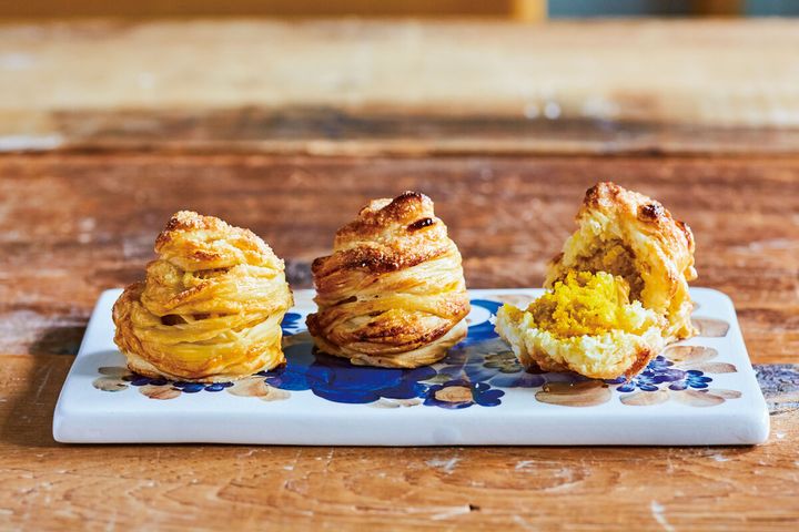 凍ったままのパイシートなら、細く切るのも楽ちん。サクサクのパイに、ほくほくのかぼちゃがたっぷりで、ついつい手が伸びちゃいます♪