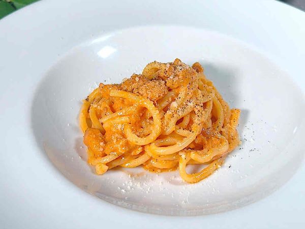 自家製の生パスタにウニとトマトクリームソースを絡めた贅沢な一品!