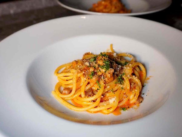 羊肉を使ったボロネーゼみたいなパスタです。羊肉のほのかに感じる野性味が魅力です。