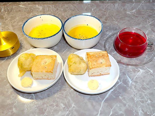 秋の実り!カボチャの冷製スープ・Bella特製パン