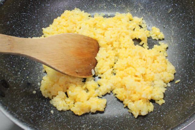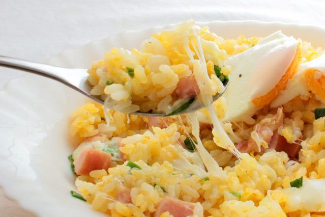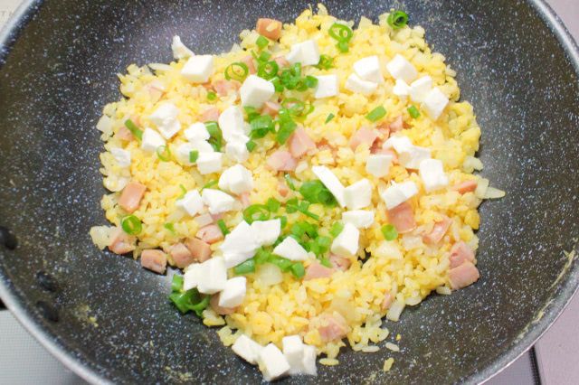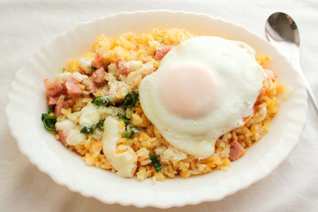 炊いて作るリゾットとはまったく違う食感ですが、炒めたご飯とモッツァレラチーズの相性も抜群です。