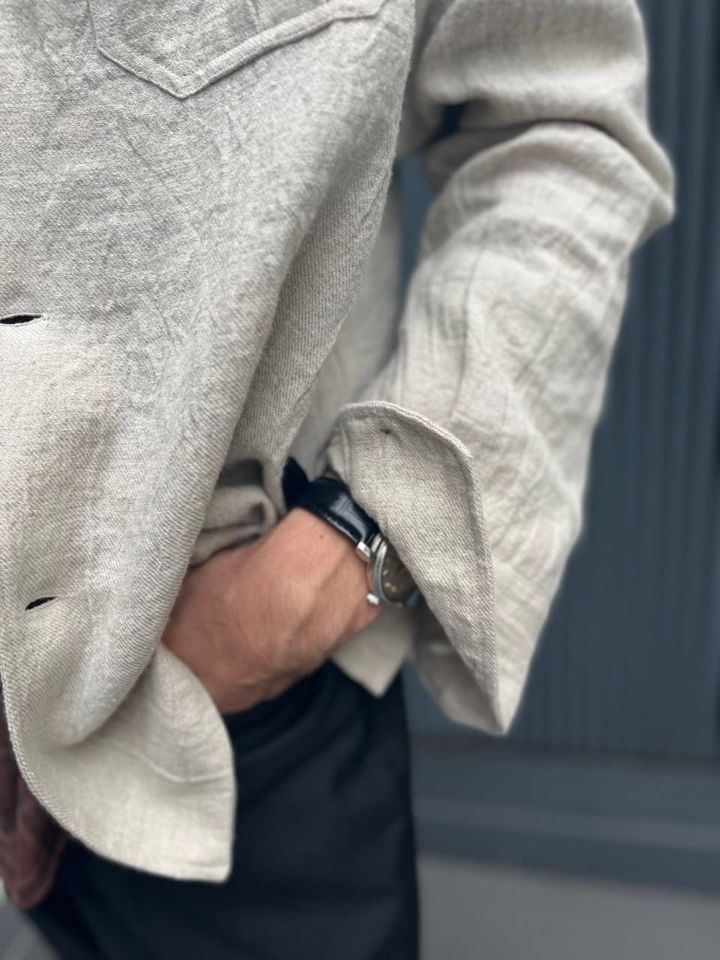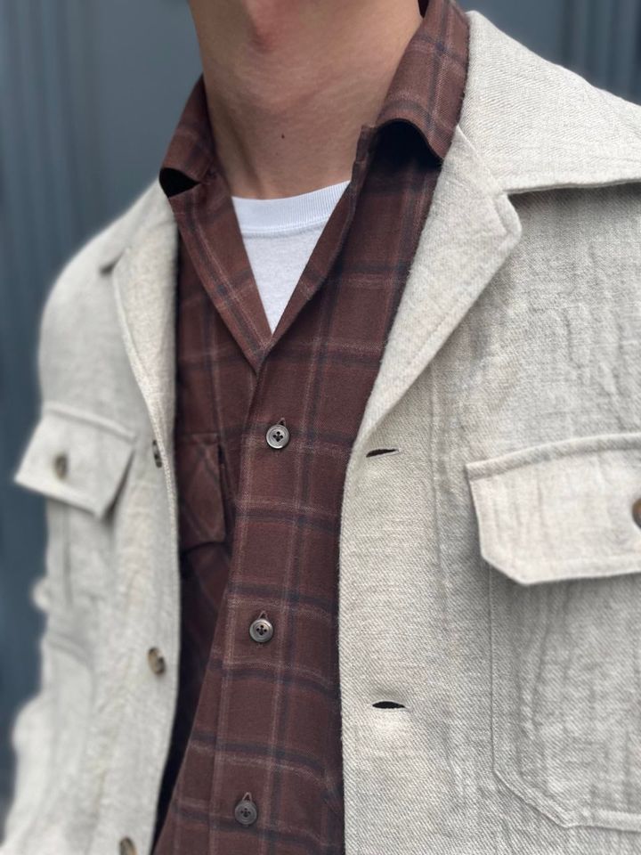 「女性には突拍子もないレイヤードに感じるかもしれませんが、シャツ・オン・シャツは男性には馴染みのあるテクニックです。同じアイテムを組み合わせているので、女性は難易度が高く感じるかもしれません。でも、生地の風合いに統一感を持たせると意外と簡単。今回は起毛感のあるコットン生地と、ウール×リネンの表情豊かな生地を組み合わせてみました。ちなみにこの風合いは、きちんと感のあるシャツをカジュアルダウンさせる効果もあるんです」