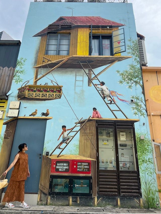 アラブエリアのモスクに続くメインの道から1本外れると壁画だらけの通りが現れます。それが、Subhan Street。壁画で有名なチャイナタウンに引き続き、アラブエリアにも毛色の変わった壁画がたくさん見られます。建物の構造を生かしたポップなイラストが多く、歩いてお気に入りの壁画を見つけるのがおすすめ。裏道なので人も少なく変わった壁画を楽しむことができます。