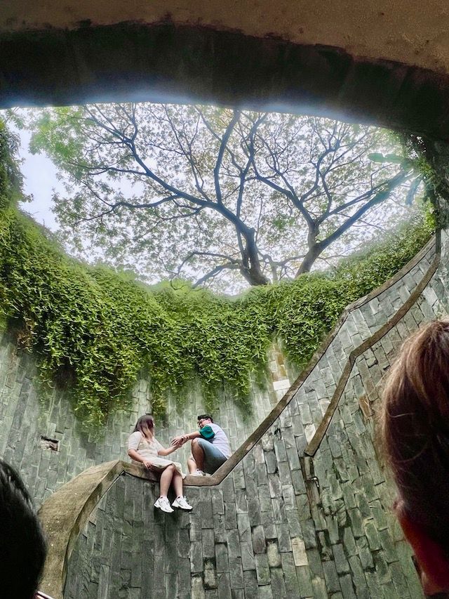 シンガポールのローカルたちにとって憩いの場であるフォート・カニング・パーク。広大な公園ですが、ここにあるFort Canning Tree Tunnel になぜか世界中の人が集まっています。なぜかというと、地下トンネルの奥に螺旋状の階段があり、下から上を見上げると綺麗な緑が生い茂っているため、吸い込まれるような不思議な写真が撮れるとインスタグラムで話題に。私は朝9時に訪れましたが、すでに40組以上の大行列。並びたくない方はもっと早くにお散歩がてらに行くのがおすすめ。