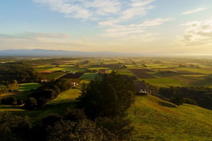 【北海道の絶景・写真12枚】畑のパッチワークに差し込む朝日…十勝らしい雄大な景色を見渡す/芽室町「新嵐山スカイパーク展望台」