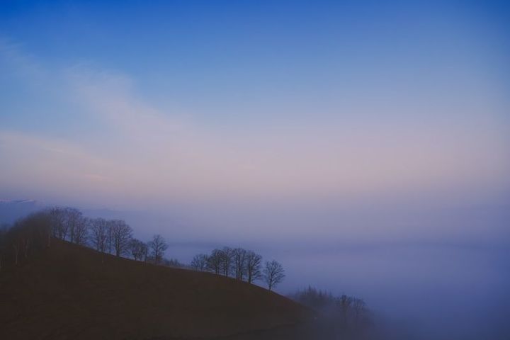 30分ほど車を走らせると、東の空はうっすらと明るくなりました。きれいな青とオレンジの幻想的な空。