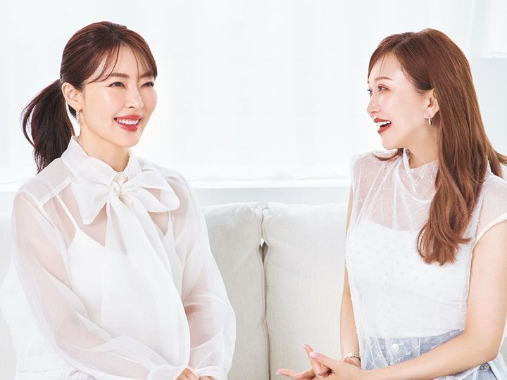 <NADEAさん>ブラウス¥8,800(ジユウバイラベルエチュード)ピアス¥16,500(ソワリー)その他/すべて本人私物<大野真理子さん>紹介画像:ブラウス¥78,100(ラケット/エストネーション)中に着ているキャミソール¥9,900(ネイヴ/オンワード樫山)スカート¥38,500(イコールメント)ピアス(右耳)¥31,900・(左耳)¥23,100(マユ/マユ ショールーム) NADEAさんメーク画像:ブラウス¥37,400(イコールメント)ピアス(1つ売り)¥187,000(オー/ハルミ ショールーム)