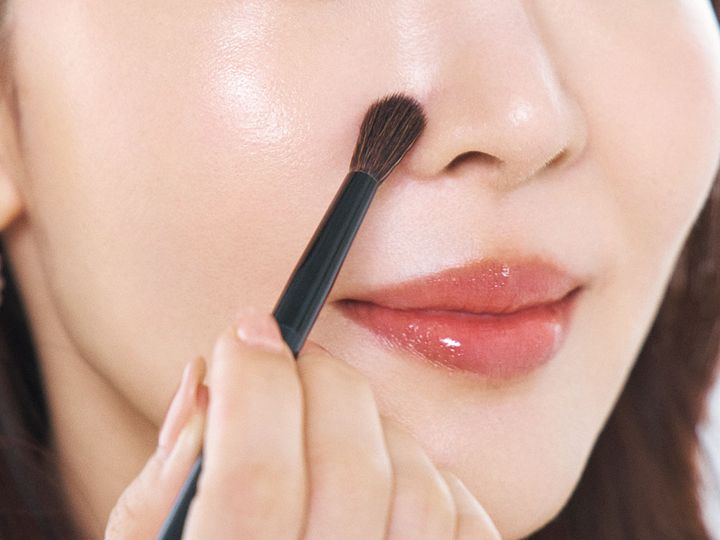 小ぶりのアイシャドウブラシで、鼻横の皮脂が溜まって凹んで見える部分にパウダーをON。毛穴も目立ちにくくサラサラに。目元の滲みやすい部分にも。