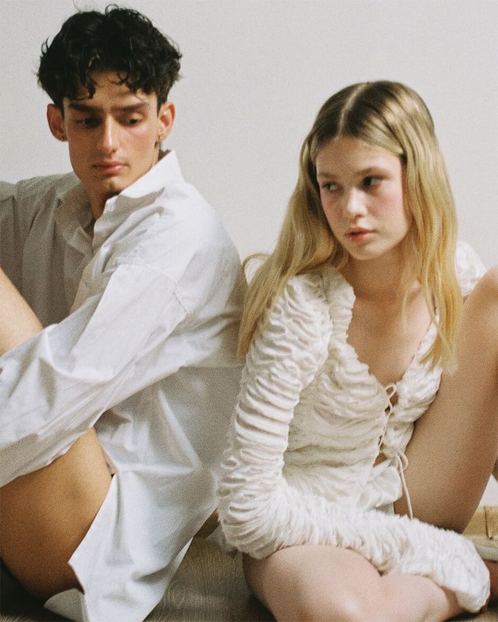 left - shirt by STUDIO 29, dress by ANNUKO, shoes stylist’s own right - shirt by YOUR ANTIHERO