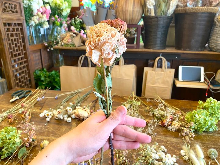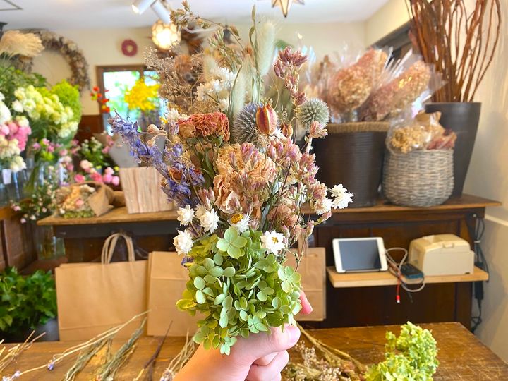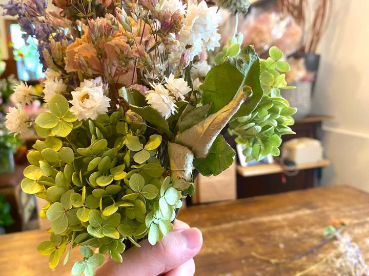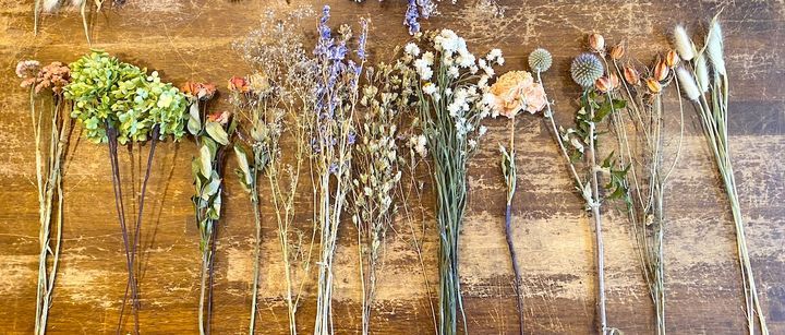 ※記事で紹介している「ドライフラワーのブーケ」、「ドライフラワーのアレンジメント」の開催は現在終了しております。