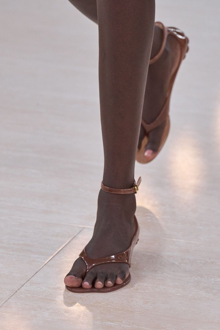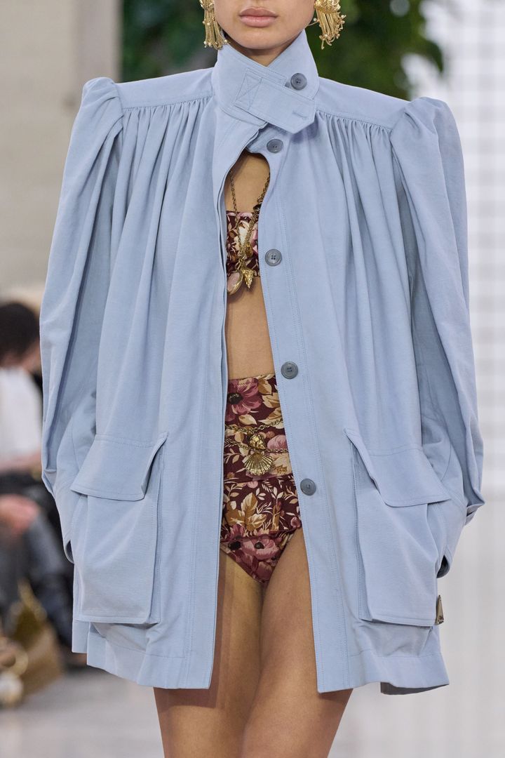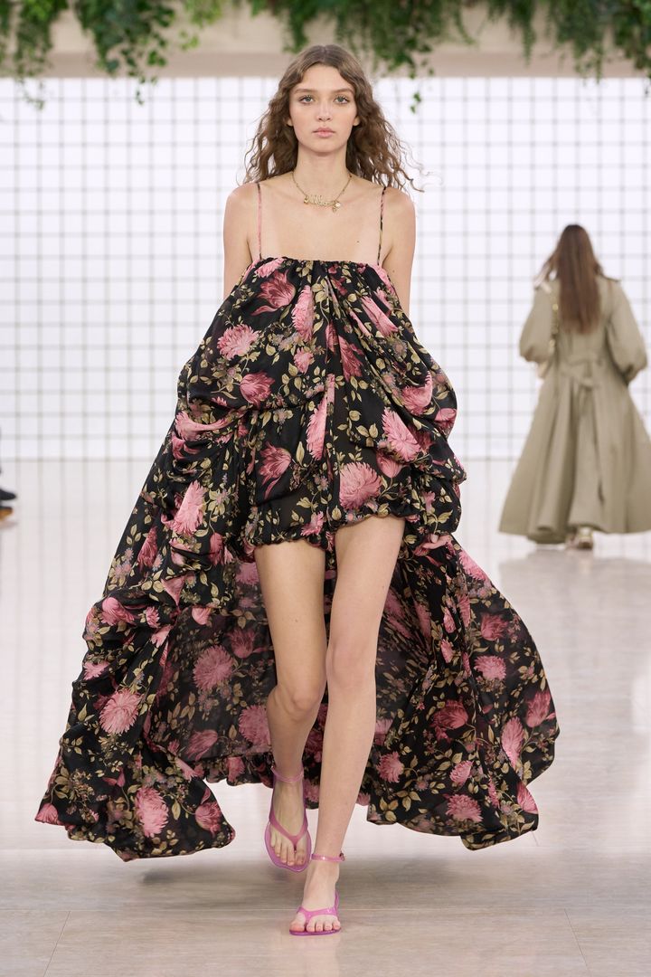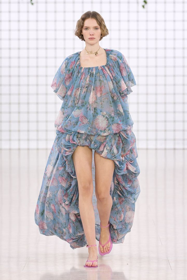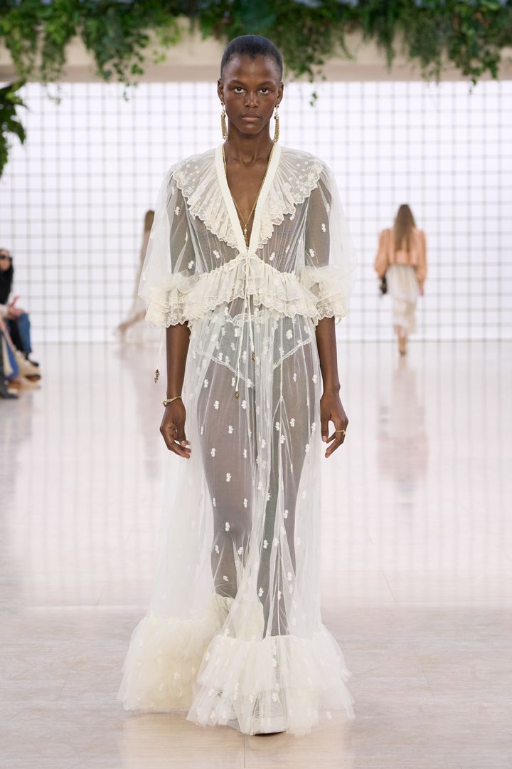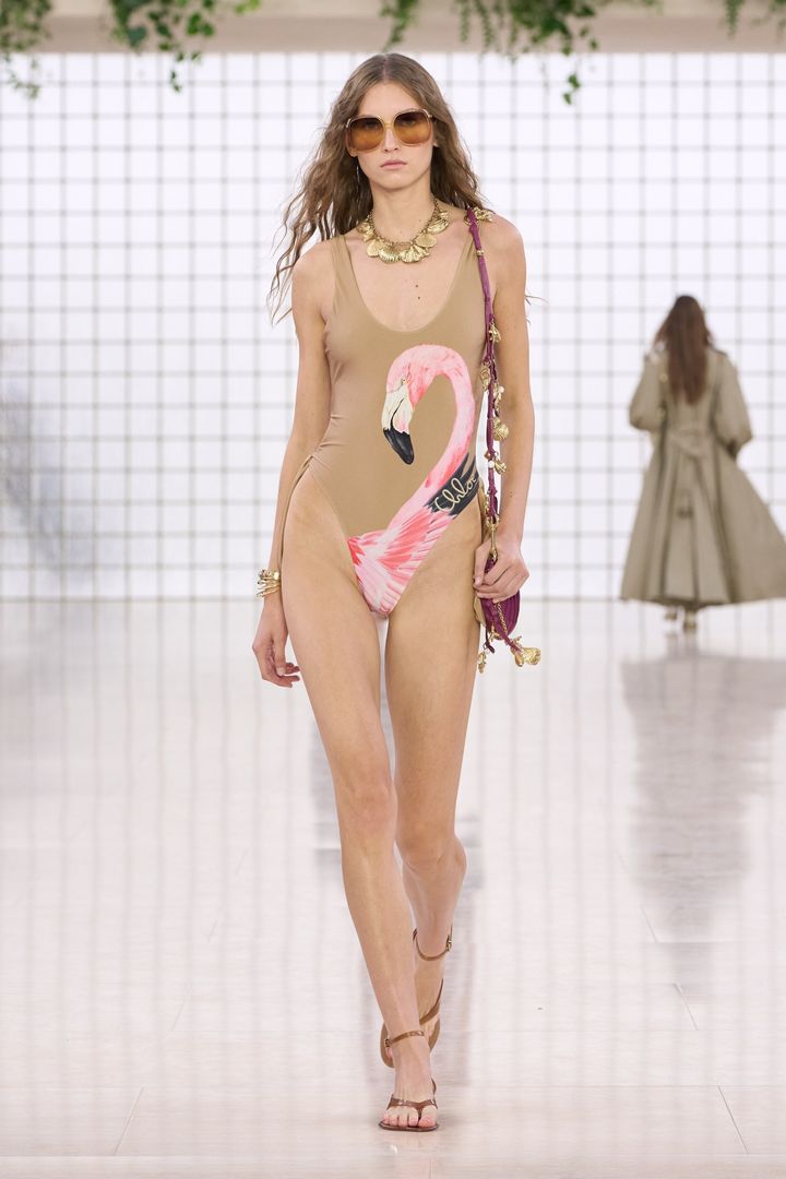 今回のコレクションは、2月に発表したファーストコレクションによりカジュアルな要素を加え、進化させた堂々たるものだ。ハイウエストのフレアデニムは2004年春夏シーズン、フィービー・ファイロ期に打ち出されたジーンズを思わせ、フラミンゴのスイムウェアはステラ・マッカートニー期のあざと可愛さを受け継いでいる。フロントロウのセレブたちが着るラッフルやレースをふんだんにあしらったピースよりも手が出しやすいこれらは、キトゥンヒールのジェリーサンダルと並んで今シーズンの人気アイテムになることだろう。