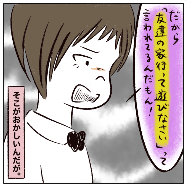 さらに「だから『友達の家行って遊びなさい』って言われてるんだもん!」とおかしな理由を言い始めます。