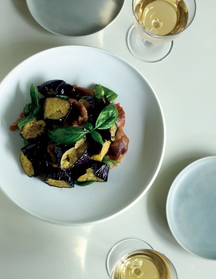 3. ワインビネガーの味付けとバジルが香る!おもてなしにも最適な『揚げなすと豚肉のサラダ』のレシピ